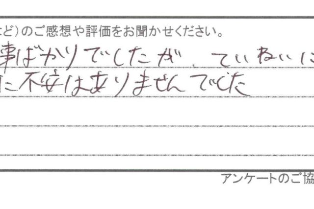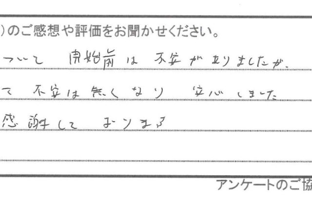 分からない事ばかりでしたが、ていねいに説明して 頂き、特に不安はありませんでした