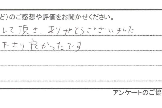 御社に買取りして頂きありがとうございました。 親身に聞いてくださり良かったです。