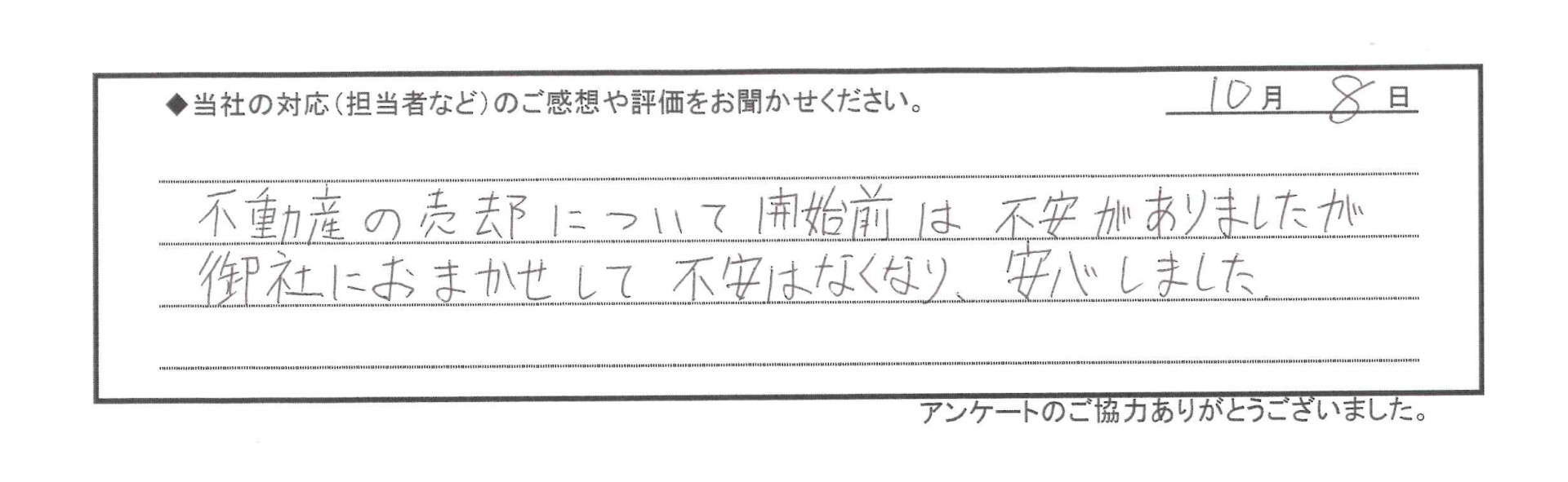 不動産の売却について開始前は不安がありましたが