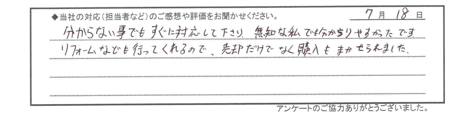 リフォームなども行ってくれるので、売却だけでなく、購入もまかせられました