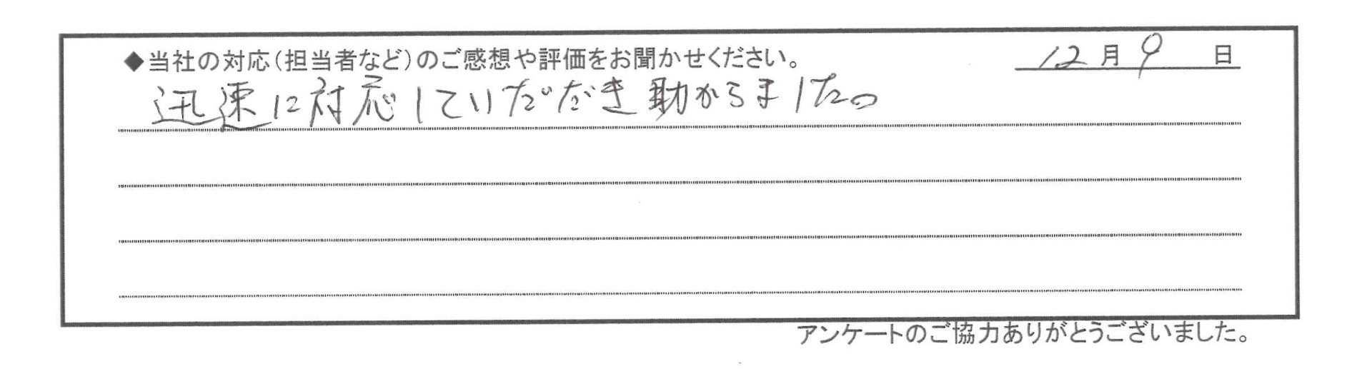迅速に対応していただき助かりました。
