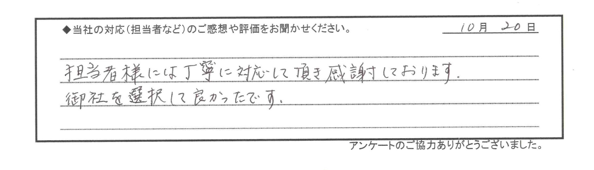 担当者様には丁寧に対応して頂き感謝しております。
